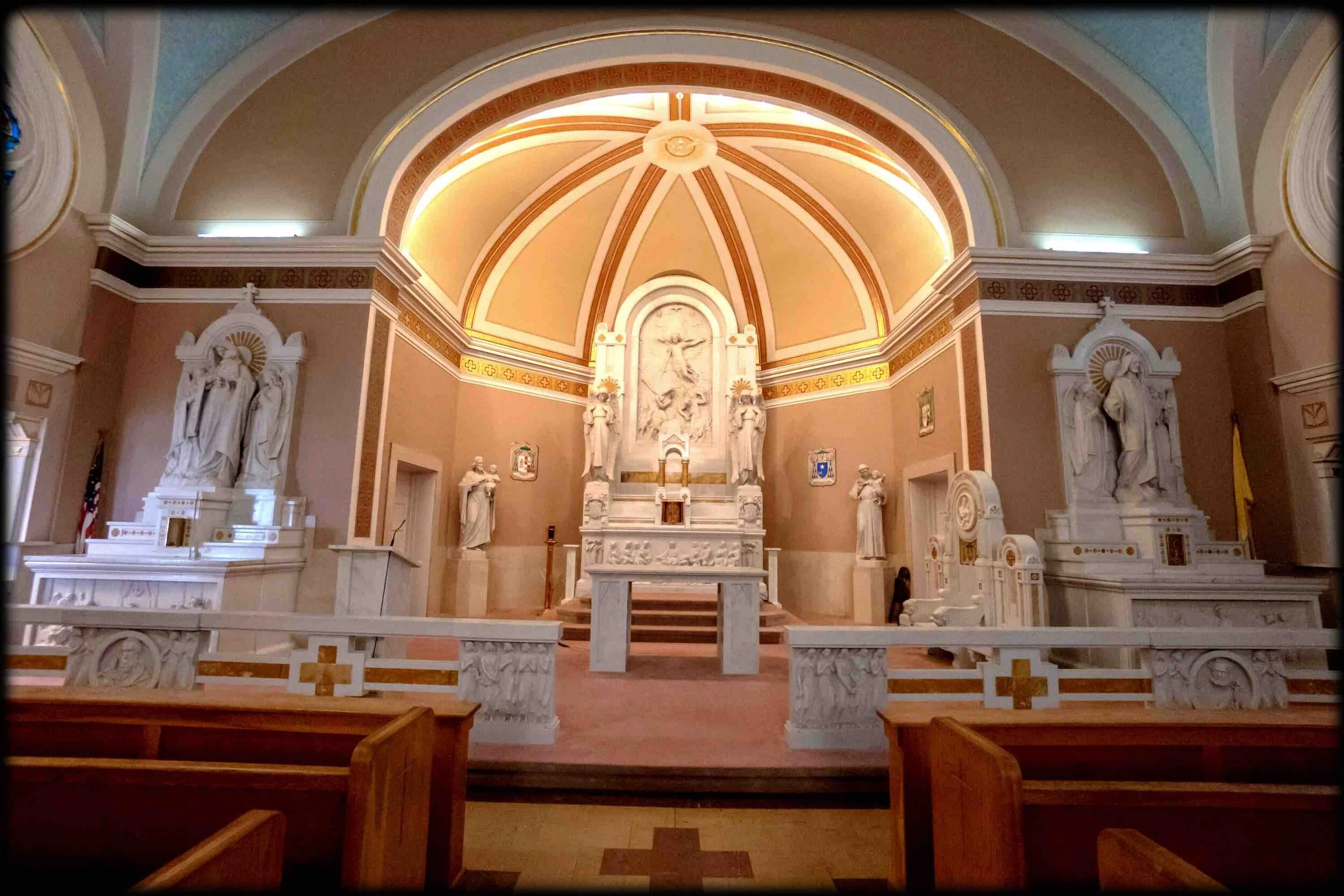 Phenomenal 1800’s Antique Carved Marble Altar with St. Mary & Angels