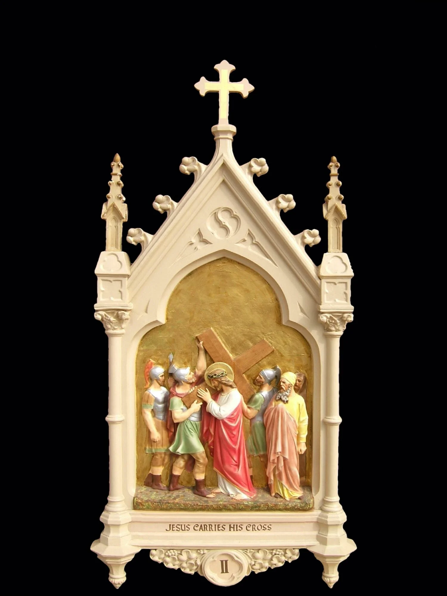 BUY OR SELL WOOD, STONE, & PLASTER STATIONS OF THE CROSS ANTIQUE CHURCH FURNISHINGS